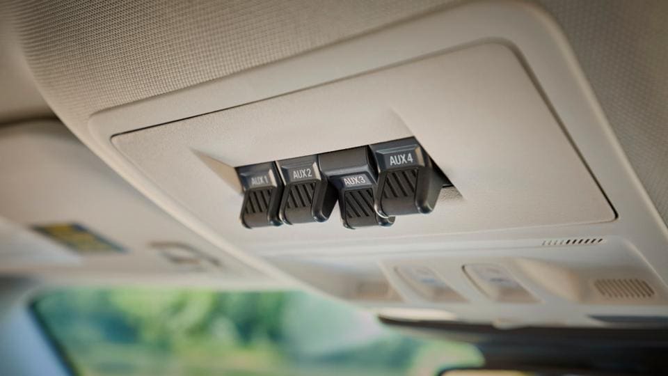 Four available pre-wired auxiliary switches allow you to activate installed aftermarket accessories such as flood lights and electric winches.